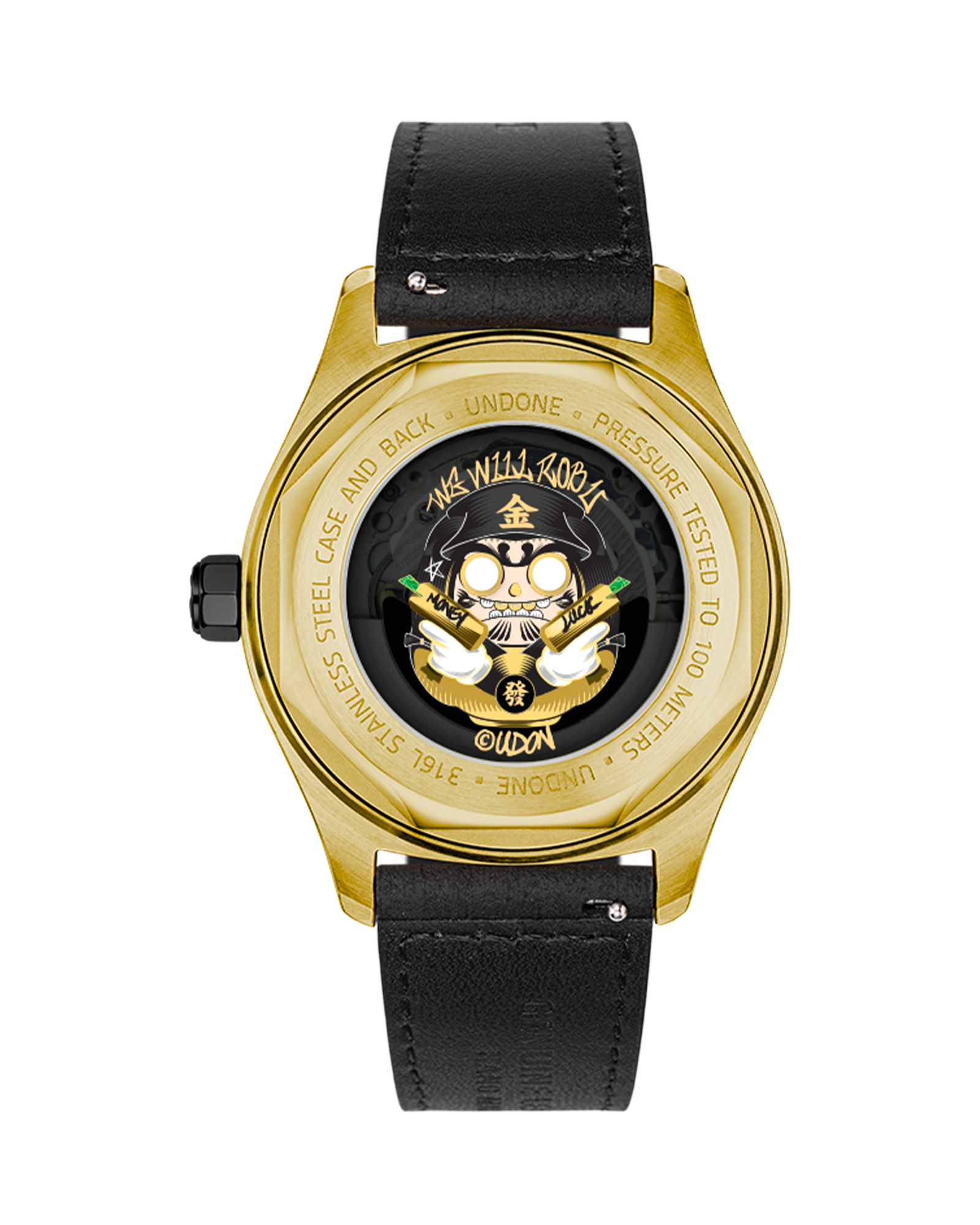 Introducing our bold watch designed by UDON, the talented in-house artist at UNDONE, led by the Ivan Law. With extensive experience in design and creativity, Udon is a master at using watches as a canvas to tell captivating stories and foster connections within diverse communities. This timepiece features a striking gold Daruma theme, embodying the spirit of abundance and the aspiration for wealth, wishing that cash flows freely and resources come your way.