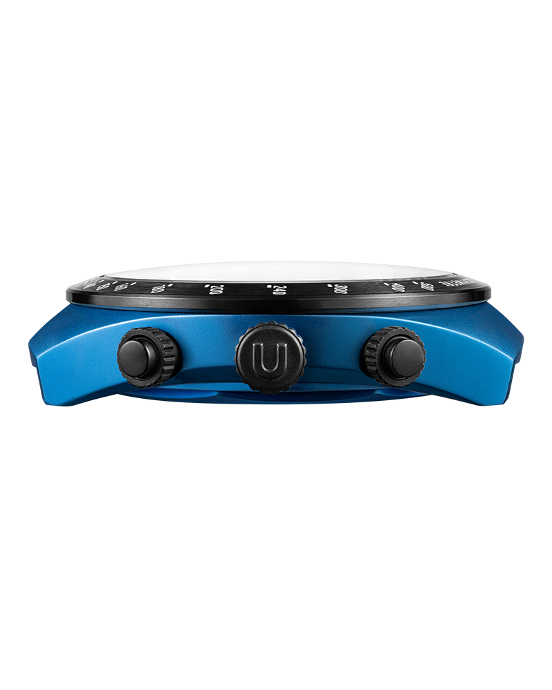 Designed from 316L stainless steel, the case color mirrors the Tachikoma’s distinctive body, while the tricompax dial pays homage to the AI tank’s three “eyeballs.”