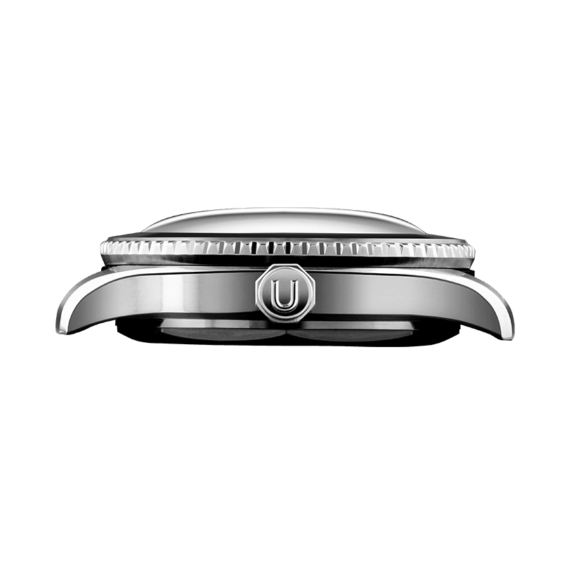 This “Blacksand” edition highlights a left hand crown setup, a rare feature in a watch. It not only caters to “lefties” who wear their watches on the right hand, but also for those who wear watches on their left hand yet prefer the crown not intruding the wrist. Popeye™ himself stands proud in the middle of the dial in his well-loved gruff – one-eye squinting, corn-cob pipe tooting demeanour – with his comically muscular arms serving as the functioning hours and minutes hands. Surrounding the black dial is a bi-directional rotating bezel with beige diver function numerals to measure any time-related events. Complementing the watch is a 316L flat 3-link “Oyster” style stainless steel bracelet strap, complete with our signature quick-release technology, a rare but welcomed convenience for bracelets of this kind.